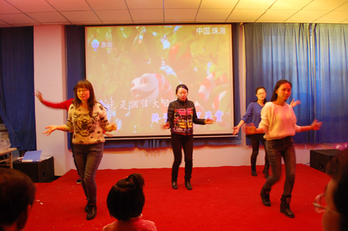 年會在激情洋溢的歌曲----國歌《義勇軍進(jìn)行曲》和公司司歌《國超之歌》中拉開帷幕。年會有中外文歌曲、精彩的游戲、抽獎、絕活、舞蹈等節(jié)目,營造出歡樂祥和的節(jié)日氣氛,員工的精彩表演贏得滿場陣陣喝彩。