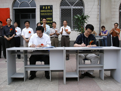 | 為了促進高新技術企業(yè)發(fā)展,培養(yǎng)科技人才,河北省科技大學把國超新技術有限公司確定為河北科技大學外國語學院教育教學實習基地。 2006年5月24日,在公司門前隆重舉行河北科技大學外國語學院教育教學實習基地揭牌儀式,出席這次儀式的領導和來賓有: 河北科技大學黨委副書記:段東 河北科技大學外國語學院黨委書記:韓驍兵 河北科技大學外國語學院院長:張森 河北科技大學外國語學院副書記:白新芳 河北科技大學外國語學院團委書記:張文林 辛集市人民政府副市長:張書凱 辛集市政協(xié)副主席:陳蘭章 馬振全 辛集市政協(xié)組聯(lián)科科長:李樹果 辛集市科技局局長:張國勛 辛集市經(jīng)貿(mào)局局長:梁建祠 辛集市工商業(yè)聯(lián)合會會長:馬建章 辛集市工商業(yè)聯(lián)合副會長:王印昭 辛集市科學技術協(xié)會主席:劉品 辛集市文體局黨組書記:韓劍 辛集市教育局副局長:魏會來