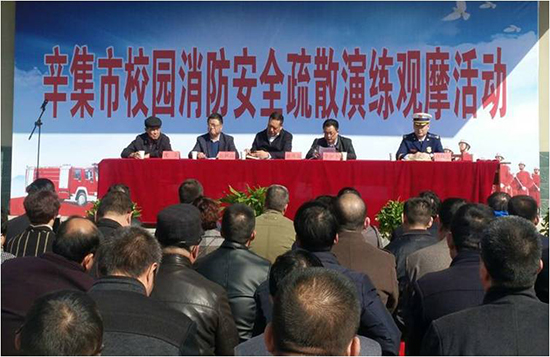 | “隱患顯于明火,防范勝于救災(zāi)”為提高師生的消防安全意識(shí),培養(yǎng)全校工作人員在遇到火災(zāi)等突發(fā)事件的應(yīng)變能力,掌握安全逃生與疏散技巧。結(jié)合我市實(shí)際情況,2019年3月14日,特舉辦“消防安全進(jìn)校園”的一次消防演習(xí)活動(dòng)。此活動(dòng)由辛集市教育局主辦,新壘頭鎮(zhèn)中學(xué)及河北國(guó)超消防設(shè)備科技有限公司承辦,希望普及消防知識(shí),防患于未來。 參加本次活動(dòng)的有辛集市教育局黃興君局長(zhǎng)、趙樹山副局長(zhǎng),應(yīng)急事務(wù)管理局辛彥卜局長(zhǎng),辛集市消防大隊(duì)盧保龍大隊(duì)長(zhǎng),消防專家沈文教授。還有各學(xué)區(qū)總校長(zhǎng)、直屬學(xué)校和民辦學(xué)校校長(zhǎng);各學(xué)區(qū)、直屬學(xué)校、民辦學(xué)校主管安全副校長(zhǎng);各初中校長(zhǎng)、主管安全校長(zhǎng);全市完小校長(zhǎng)、主管安全副校長(zhǎng)共計(jì)230余人及新壘頭鎮(zhèn)中學(xué)的1100多名師生。