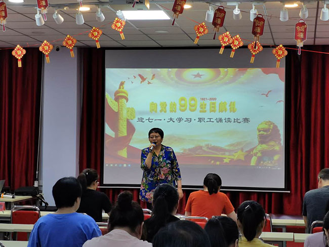 | 根據(jù)《河北省總工會(huì)辦公室關(guān)于開辦“大學(xué)習(xí)”課堂 建立職工讀書小組深化開展學(xué)習(xí)習(xí)近平新時(shí)代中國特色社會(huì)主義思想職工誦讀活動(dòng)的意見》,在市總工會(huì)的關(guān)心和指導(dǎo)下,我公司工會(huì)于2020年6月15日召開會(huì)議,組成以各部門負(fù)責(zé)人為領(lǐng)讀人的職工讀書小組,為深化開展職工誦讀活動(dòng),部署舉辦 “向黨的99歲生日獻(xiàn)禮 迎七一 大學(xué)習(xí) 職工誦讀比賽”。6月20日下午40余名職工參加了誦讀初賽, 17名職工脫穎而出,參加了6月23日的復(fù)賽,公司職工強(qiáng)紅、劉彤、鄧贊分別榮獲本次比賽的前三名。公司工會(huì)為獲獎(jiǎng)?wù)呒皡⒓颖荣惵毠し謩e頒發(fā)了榮譽(yù)證書和紀(jì)念品。 通過開展學(xué)習(xí)習(xí)近平新時(shí)代中國特色社會(huì)主義思想職工誦讀活動(dòng),進(jìn)一步推進(jìn)習(xí)近平新時(shí)代中國特色社會(huì)主義思想進(jìn)企業(yè)、進(jìn)車間、進(jìn)班組,真正做到入腦入心,達(dá)到了進(jìn)一步引導(dǎo)職工增強(qiáng)“四個(gè)意識(shí)”、堅(jiān)定“四個(gè)自信”、做到“兩個(gè)維護(hù)”、把加強(qiáng)職工思想政治引領(lǐng)的責(zé)任落實(shí)落細(xì)落地的效果。