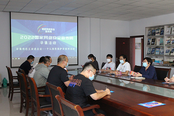 | 為進(jìn)一步推動網(wǎng)絡(luò)安全建設(shè),加強(qiáng)網(wǎng)絡(luò)安全宣傳,增強(qiáng)職工網(wǎng)絡(luò)安全意識,提升職工網(wǎng)絡(luò)安全防范意識和技能,2022年9月7日下午,辛集市總工會及辛集鎮(zhèn)工會領(lǐng)導(dǎo)一行來我公司,開展了以“網(wǎng)絡(luò)安全為人民,網(wǎng)絡(luò)安全靠人民”為主題的“個人信息保護(hù)日”入企宣傳活動。與會領(lǐng)導(dǎo)針對網(wǎng)絡(luò)安全進(jìn)行了集中宣講。會上,發(fā)放了個人信息保護(hù)宣傳彩頁,并講解了如何防范個人信息泄露以及個人信息泄露的危害等網(wǎng)絡(luò)安全保護(hù)常識。 大數(shù)據(jù)時代,個人信息直接關(guān)系到每個公民的隱私、財產(chǎn)和生命安全,也事關(guān)社會穩(wěn)定和國家安全。通過宣傳,公司職工進(jìn)一步了解了保護(hù)個人信息安全、共筑網(wǎng)絡(luò)安全防線的重要意義,充分認(rèn)識到保護(hù)個人信息的重要性。與會職工一致認(rèn)為,今后一定要加強(qiáng)網(wǎng)絡(luò)安全法律法規(guī)的學(xué)習(xí),培養(yǎng)自覺保護(hù)個人信息的良好習(xí)慣,減少個人信息泄露的風(fēng)險和可能,保護(hù)個人隱私和生命財產(chǎn)的安全。