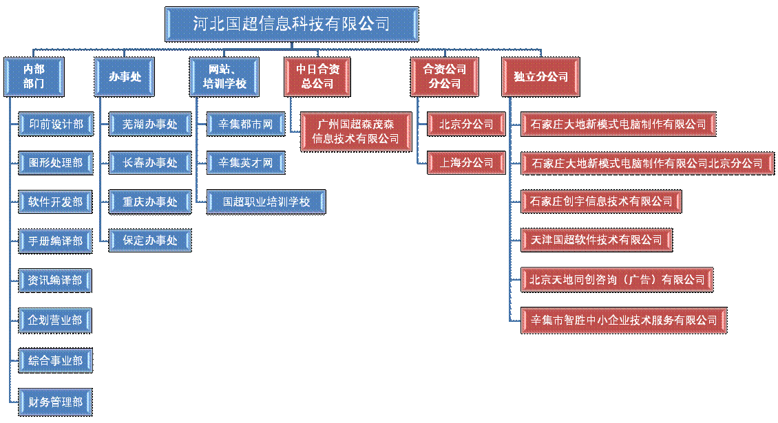 Guochao New Technology Co. Ltd. consists of eight departments, one agencies and five subsidiary companies, namely, Pre-Printing Design Department, Graph-Managing Department,Software Developing Department, ...