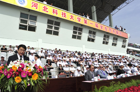 | 22日上午9時河北科技大學(xué)第一屆學(xué)生節(jié)開幕式在新校區(qū)主體育場隆重舉行,河北省委副書記付志方出席開幕式并宣布學(xué)生節(jié)開幕,省人大副主任馬蘭翠,政協(xié)副主席王剛及國家教育部,中國城市規(guī)則設(shè)計研究院,河北省國資委教育廳、文化廳、省考試院的主要領(lǐng)導(dǎo)在主席臺前臺就座,開幕式由河北科技大學(xué)黨委書記衛(wèi)舸主持。校長李強代表高校黨政領(lǐng)導(dǎo)班子致歡迎詞。 我公司做為河北科技大學(xué)的教育教學(xué)實習基地,公司總經(jīng)理劉占查應(yīng)邀參加了開幕式,并在主席臺就座。上午10點30分公司總經(jīng)理參加了大學(xué)組織的企業(yè)家座談會,就今后加強校企進一步合作、共謀發(fā)展與高校領(lǐng)導(dǎo)進行了坦誠友好的交流。